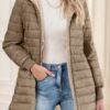 Casual Adjustable Waist Quilted Mid-Length Hooded Padded Padded Coat Clothes Winter For Women