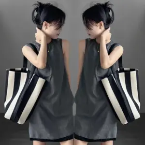 Be the first to review “Black and white contrasting wide shoulder strap women’s bag large capacity tote bag bucket bag” Cancel reply