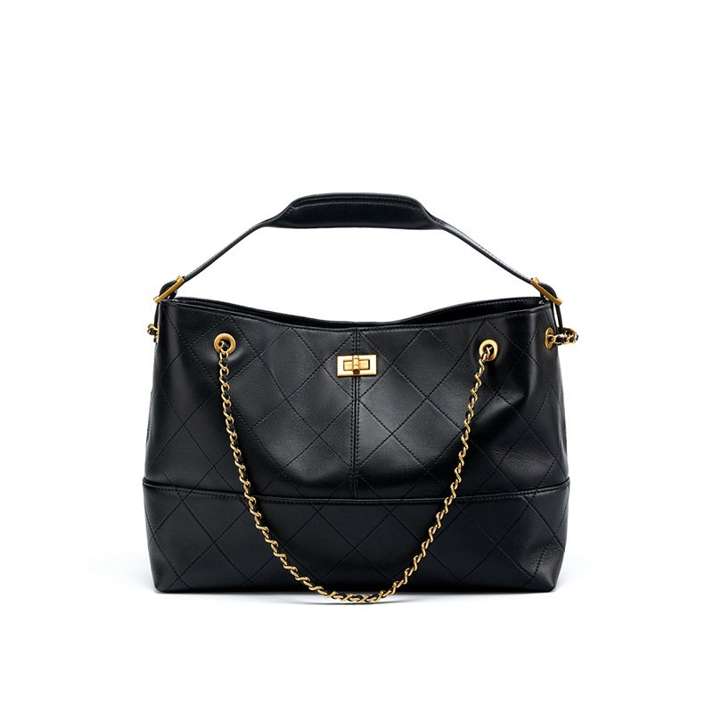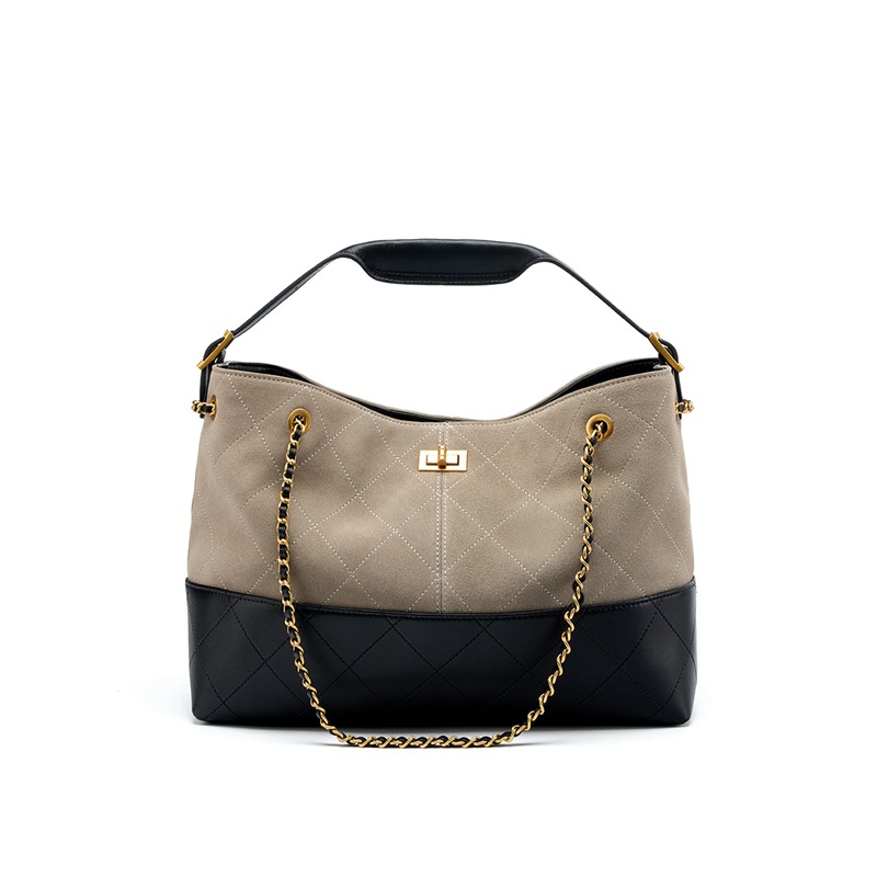 小香风链条手提通勤高级感单肩包大容量麂皮新款女斜挎真皮水桶