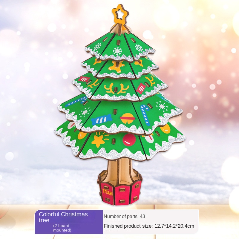 Colorful Christmas Tree Wooden Puzzle 3D Model Toy Handmade Christmas Gift for Boys and Girls Aged 6 and Over
