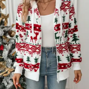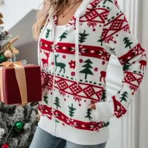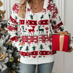 Be the first to review “Drawstring Christmas Element Zip Up Hooded Jacket”