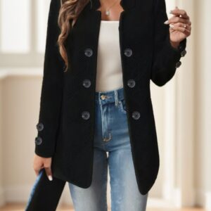 Be the first to review “Elegant Plus Size Women’S Casual Knit Polyester Jacket With Double Button Detail And Decorative Pockets”
