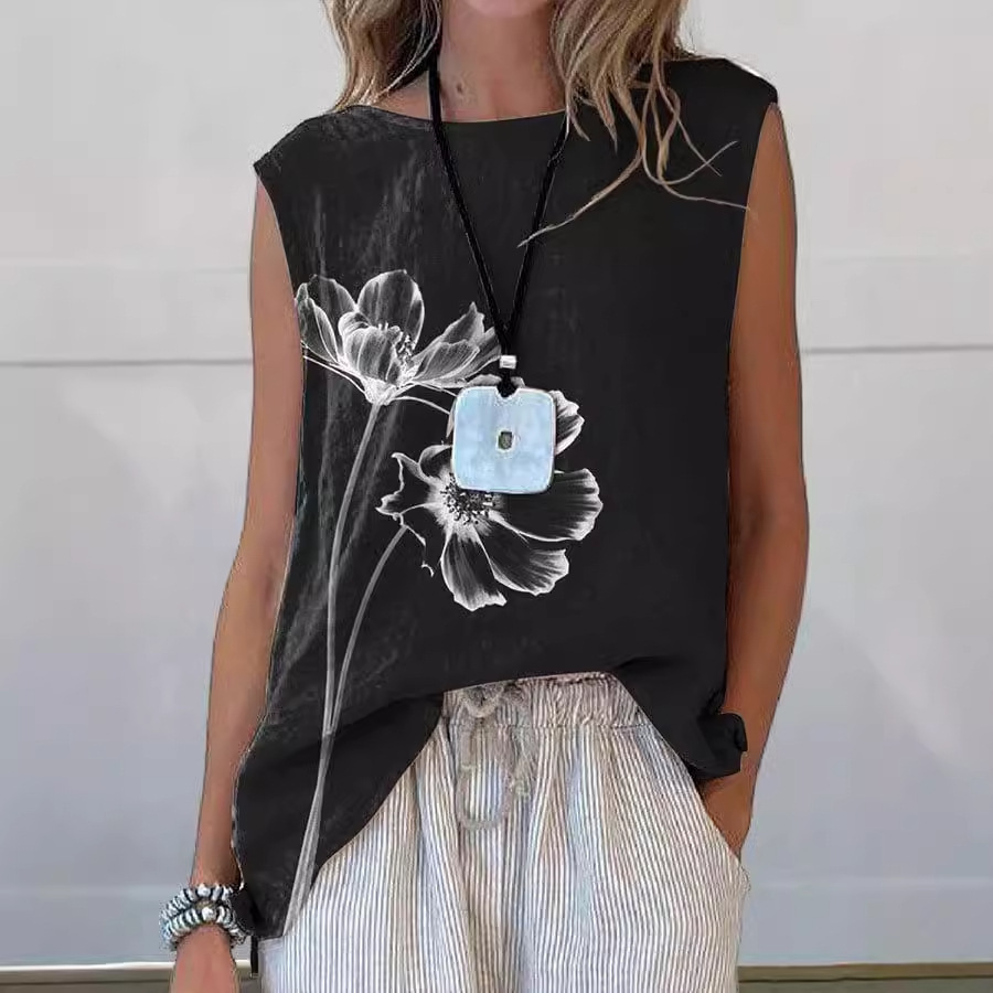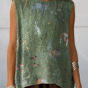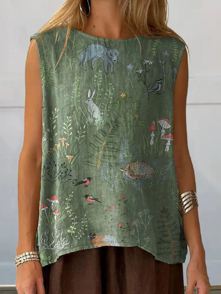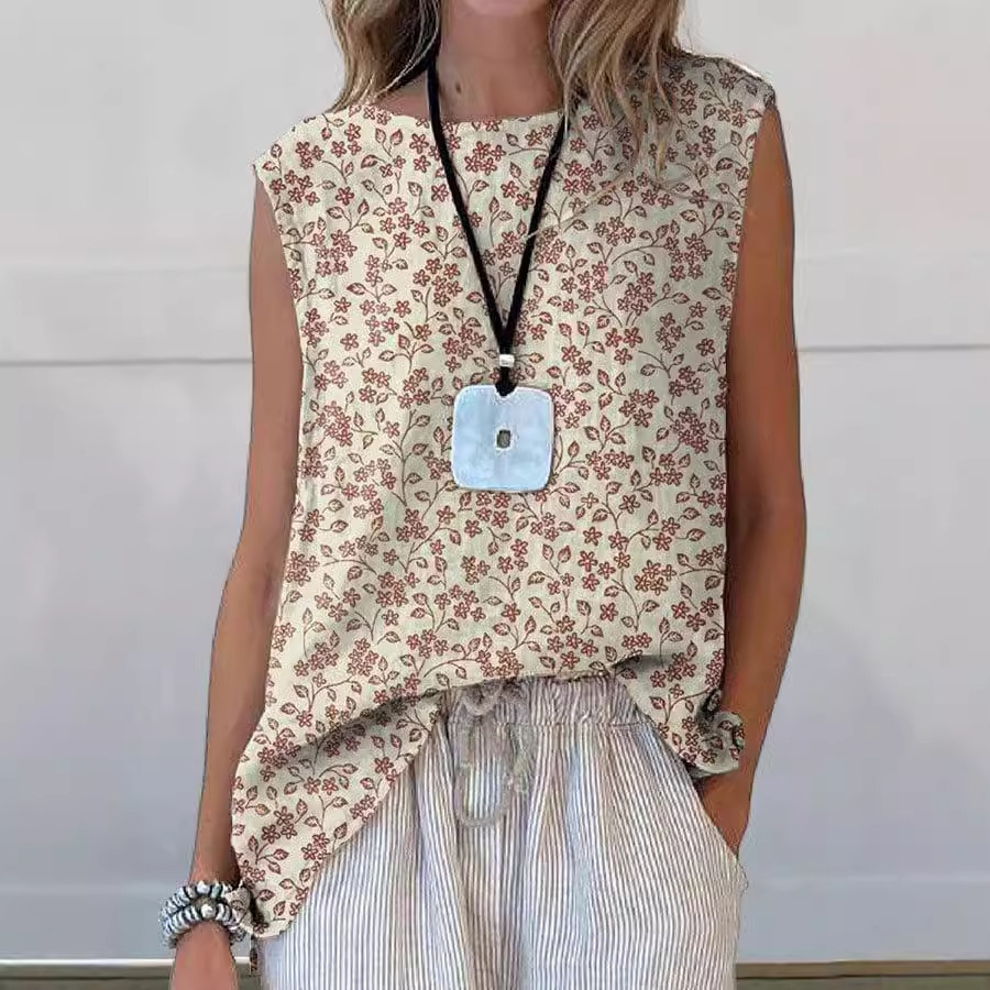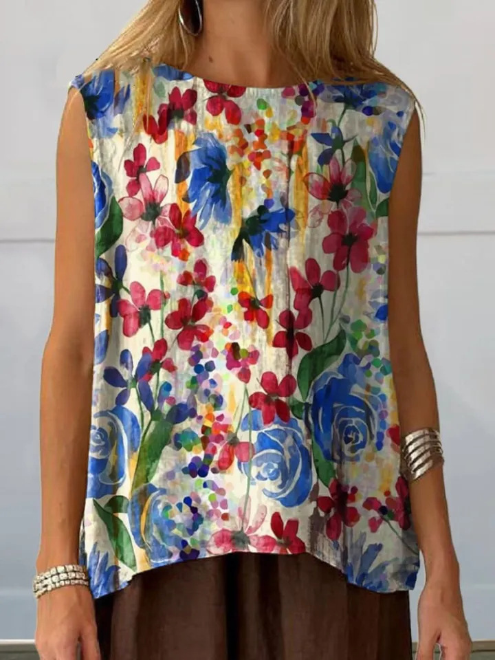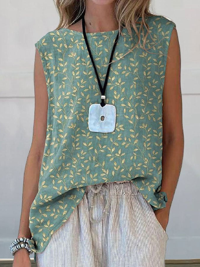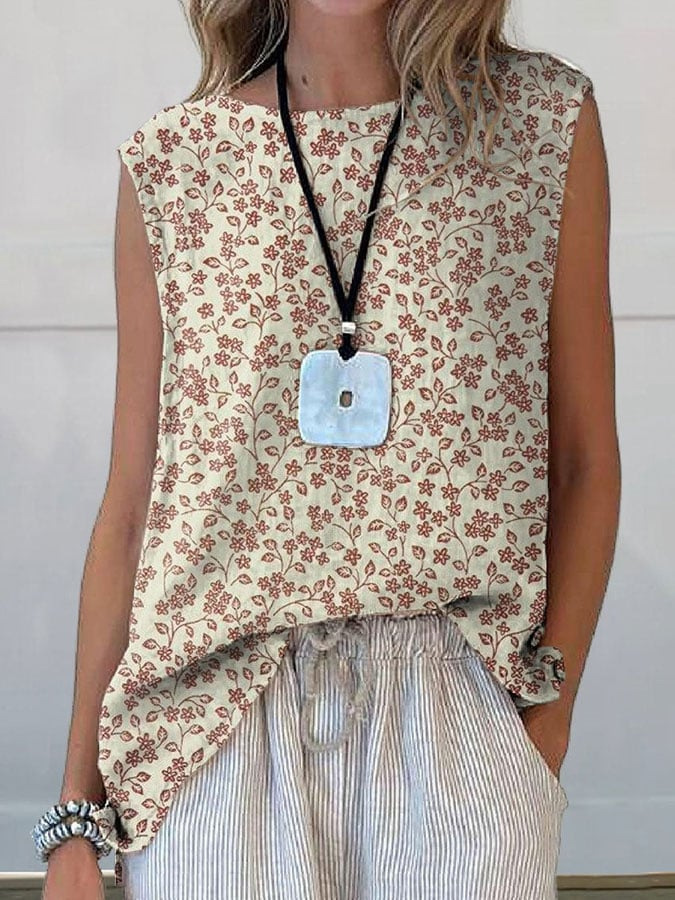 European And American Floral Cotton Linen Vest