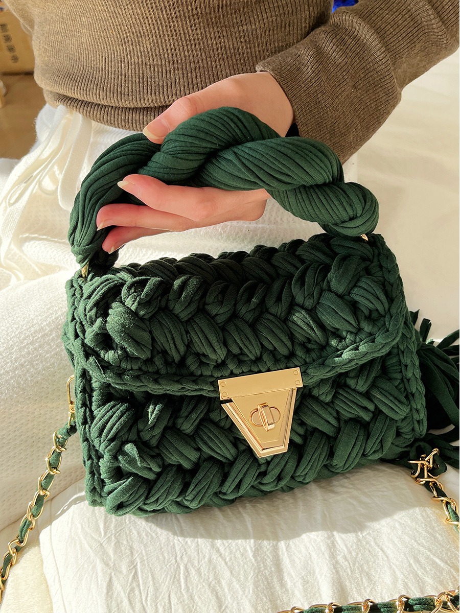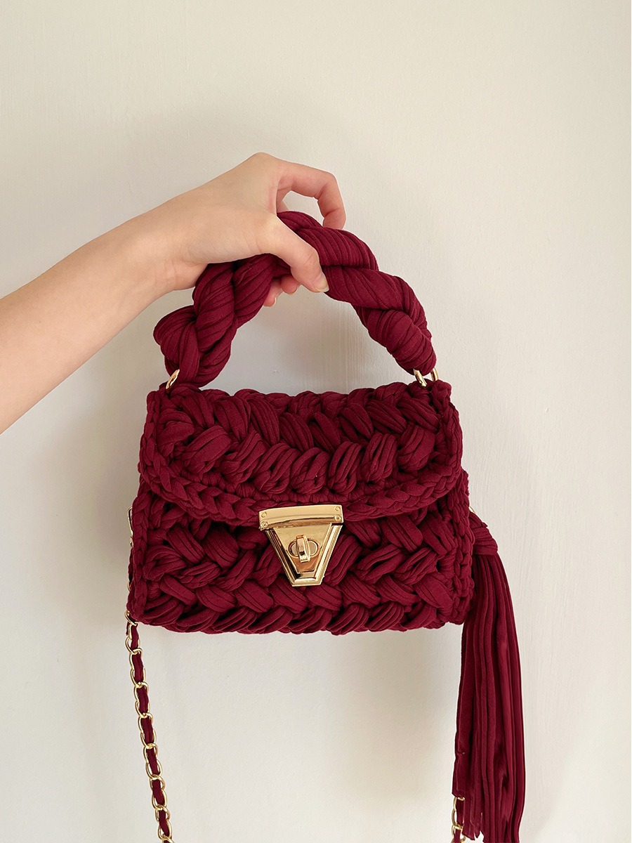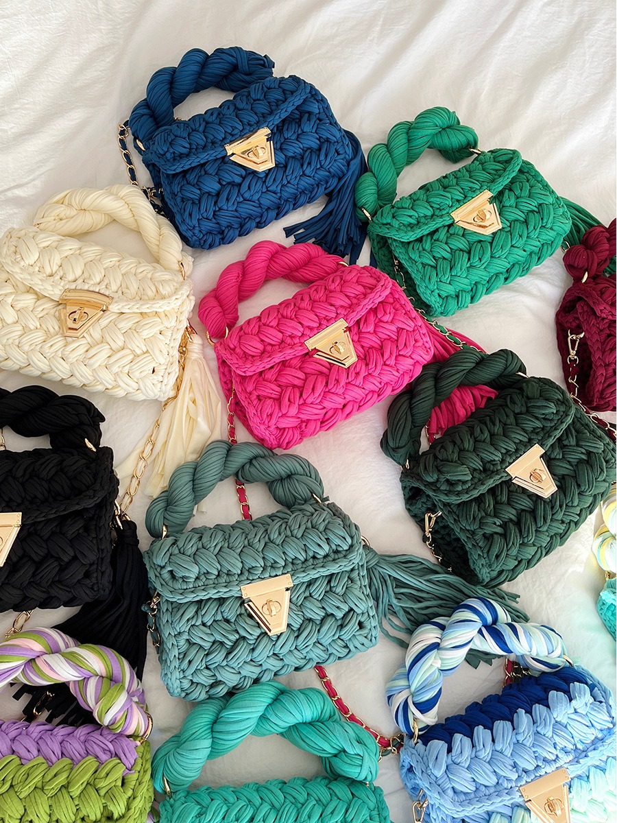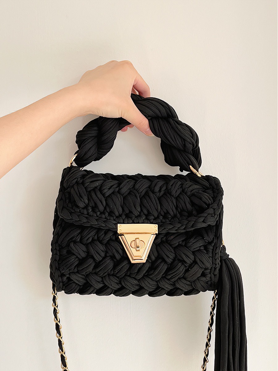 Hand woven bag crochet bag shoulder bag women’s Fried Dough Twists portable tassel bag