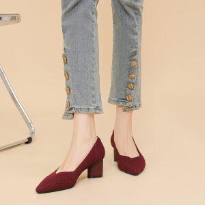 Be the first to review “High heels for women thick heel pointed V-neck straight stripe solid color” Cancel reply