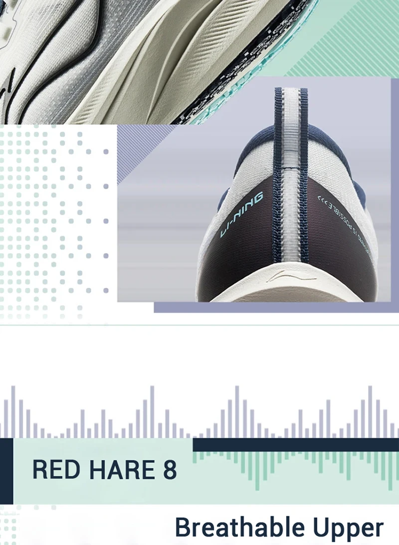 LIGHT FOAM : LIGHT FOAM is a new type of midsole technology that uses high-performance olefin copolymers to replace traditional EVA materials. It is also equipped with Li Ning’s newly developed special polymer foaming and bridging system. In addition to enhancing the mechanical strength of the foam cell wall, it can make the foam cells of the polymer more delicate and uniform, thereby reducing density, reducing the weight of the midsole, and improving its elasticity and durability.
