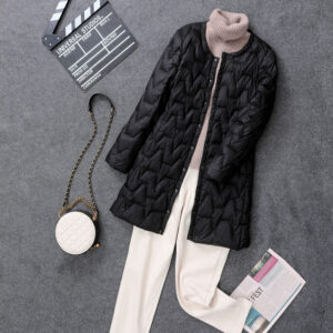 Be the first to review “Lightweight Down Jacket Women’s Collarless Mid-length Coat With Lightweight Round Neck Liner Slim Fit”