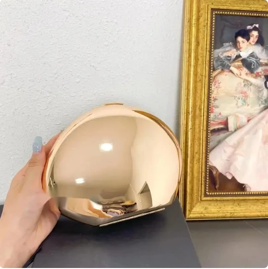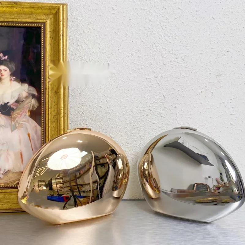 niche Metal shell shape clutch bag Smooth mirror surface silver gold women evening party cute purse handbag new