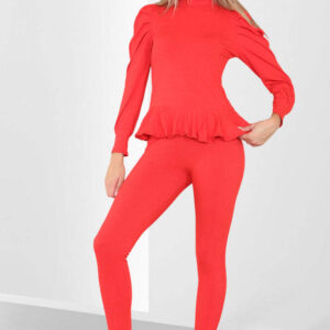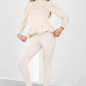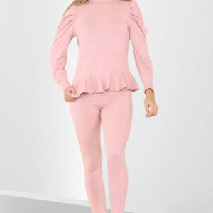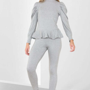 Be the first to review “Puff Sleeves Set Frill Hem Peplum Ribbed Lounge Wear Suit”
