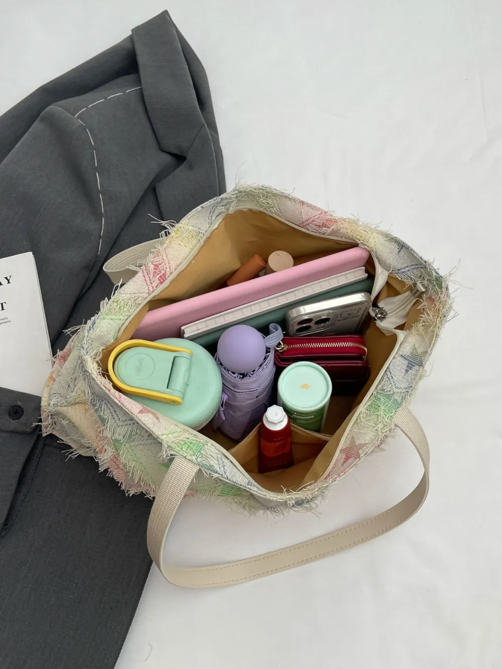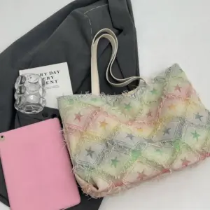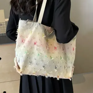 Be the first to review “Raw Hem Rainbow Color Tote Bag” Cancel reply