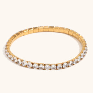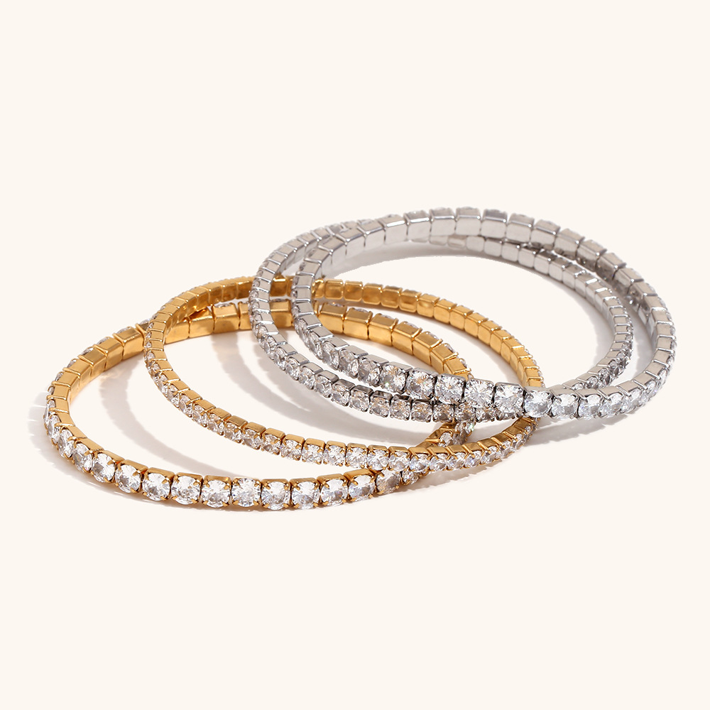 Color: 3MM stretch zircon bracelet-gold, 4MM stretch zircon bracelet-gold, 3MM stretch zircon bracelet-steel color, 4MM stretch zircon bracelet-steel color