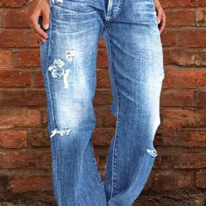 Be the first to review “Women Men Denim Pants Casual Ripped Loose Straight Leg Jeans Trousers” Cancel reply