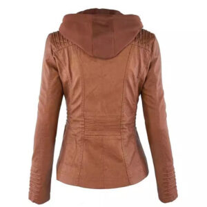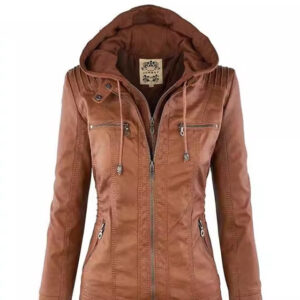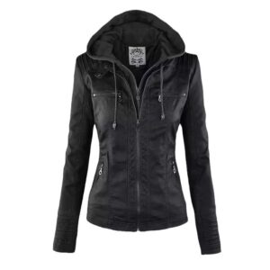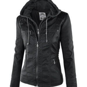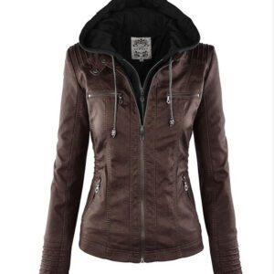 Be the first to review “Women’s Detachable Lapel Long Sleeve Solid Color Zipper Leather Jacket Coat”