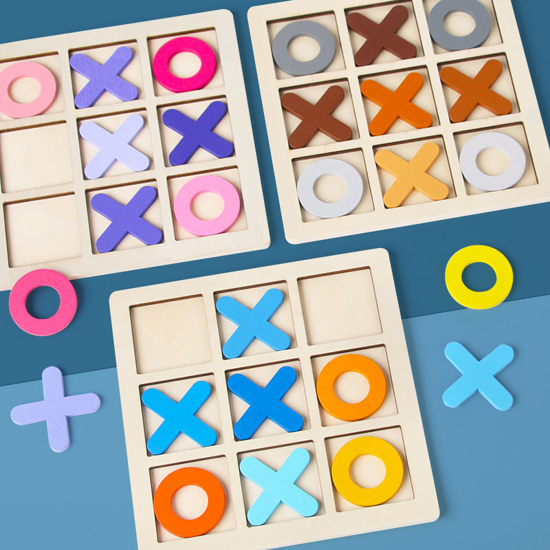 Wooden OX Well Chess Children’s Puzzle Nine Palace Grid Triple Chess Game Parent Child Desktop Interaction Christmas Toy Gift